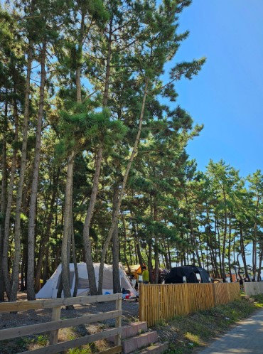 국내 3대 오토캠핑장 중 하나로 꼽히는 몽산포오토캠핑장은 울창한 소나무 숲 아래 텐트 칠 수 있는 사이트 구역이 조성되어 있어요.
